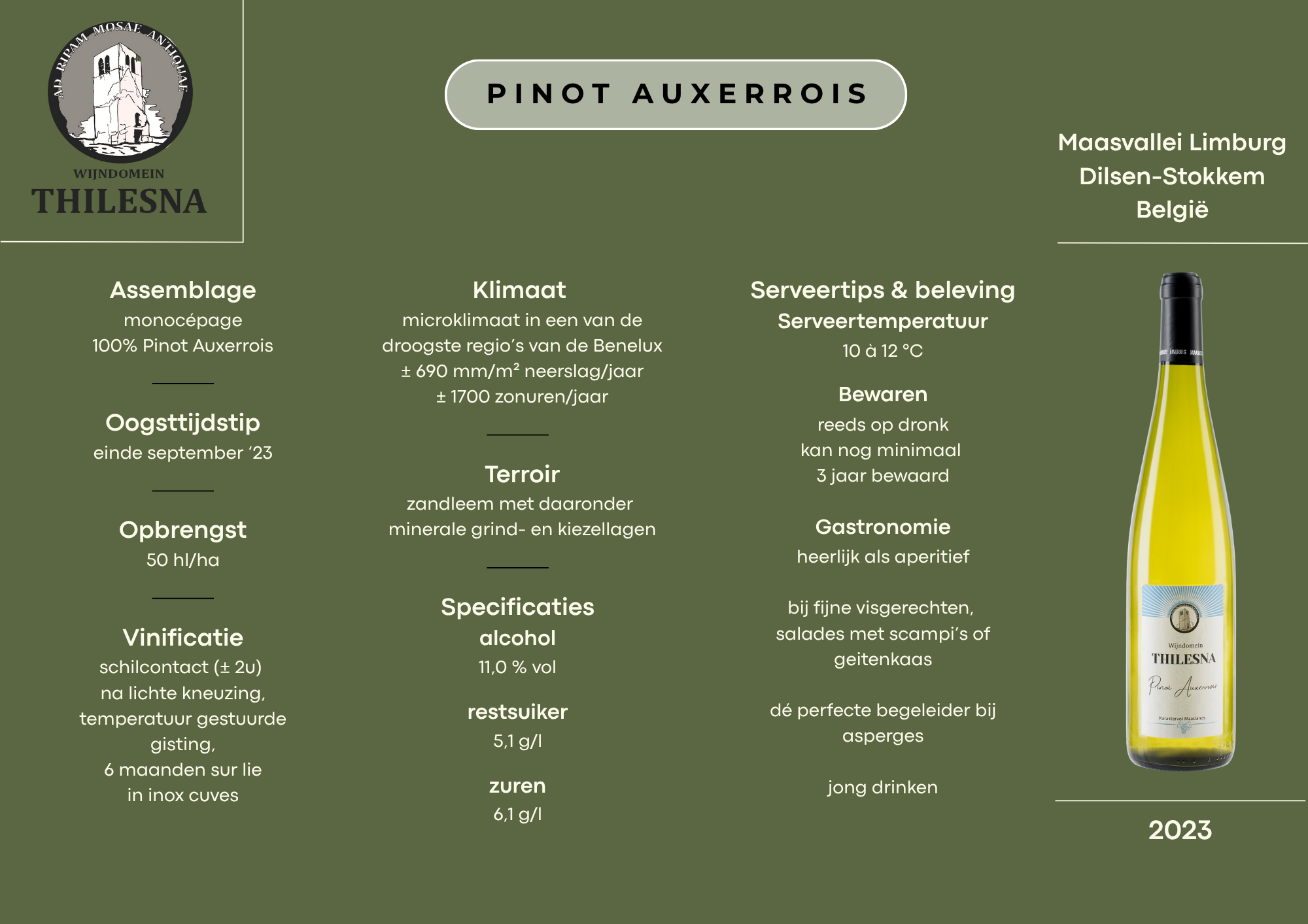 Een Pinot Auxerrois die uitblinkt in frisheid en verfijning — ideaal om te delen bij elke ontspannen gelegenheid.